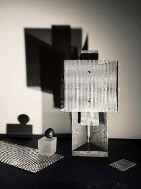 照明領域正流行"重擴散"設計,金屬網格包裹壁燈與吊燈成為亮點。紐約工作室Ladies and Gentlemen在Public Records展出的"Foreshadow Lamp",通過穿孔金屬板疊加光源,創造出"摩爾紋效果的復雜拼貼"。