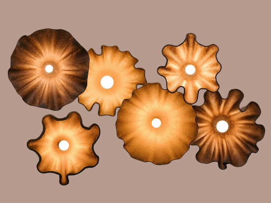 倫敦生物科技公司Biohm推出的Obscure系列,以咖啡殼、橙皮與植物粘合劑制成的Orb生物復合材料手工打造。這些100%可堆肥的有機造型燈具,展現了如何將農業副產品轉化為高性能照明解決方案。