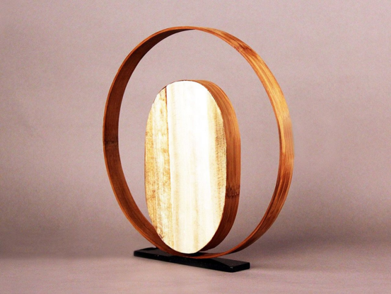 材料選擇是生態設計的關鍵。例如法國設計師Cordélia Faure與Dorian Etienne創作的Nuclée燈具,將傳統工藝丟棄的香蕉纖維通過熱壓技術穩定化,制成 minimalist 的竹圈結構燈具。