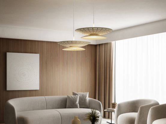 可持續照明將功能與視覺優雅無縫融合。Contardi Lighting與Adam Tihany設計的Air Light吊燈,采用工業廢料再生Green Cast亞克力,激光雕刻營造光影詩學。