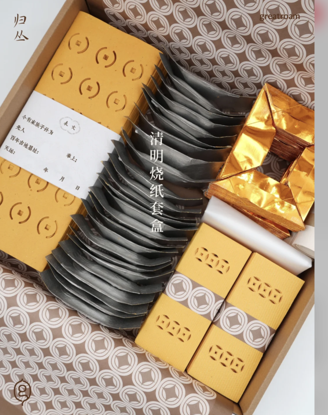 這款在清明節(jié)之際推出的「清明燒紙?zhí)缀小梗狭耸忻娉R姷臒堫愑闷贰?/p>