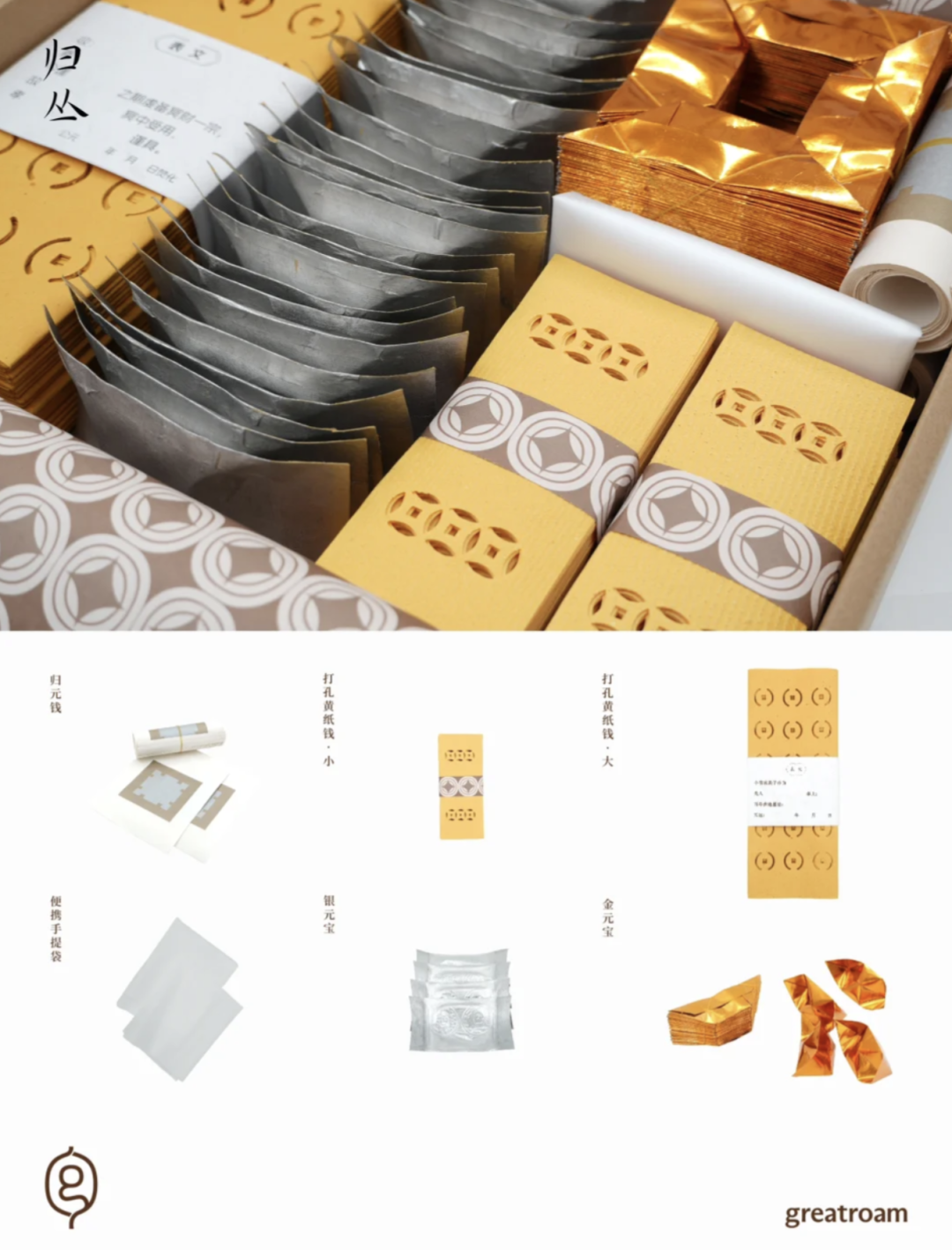 包含了殯葬、祭拜的全品類產(chǎn)品,如靈盒、靈龕、手藝、紙?jiān)㈧`牌等等。