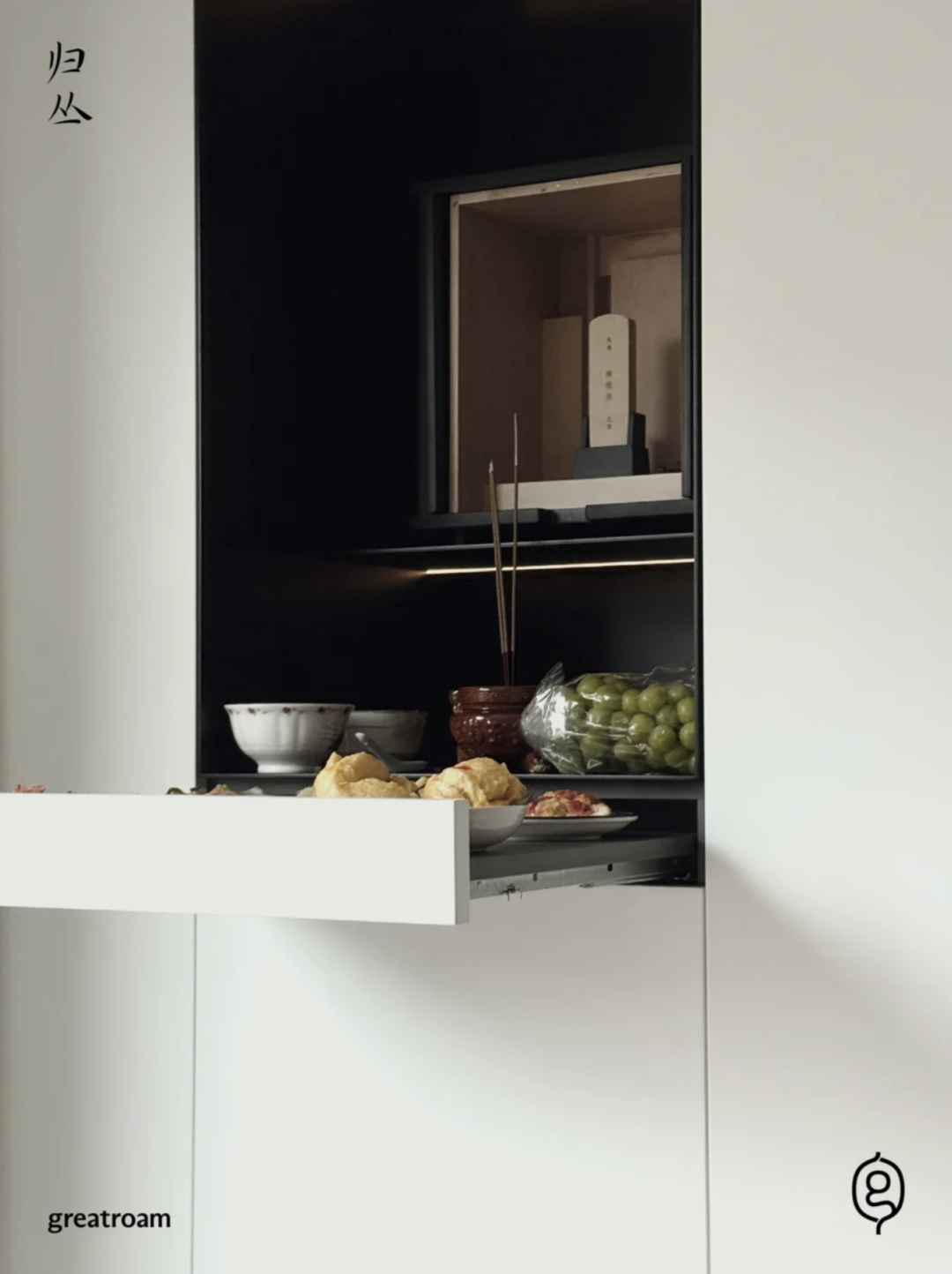 考慮到部分家庭的習(xí)慣,這款靈龕可開合,可抽拉,