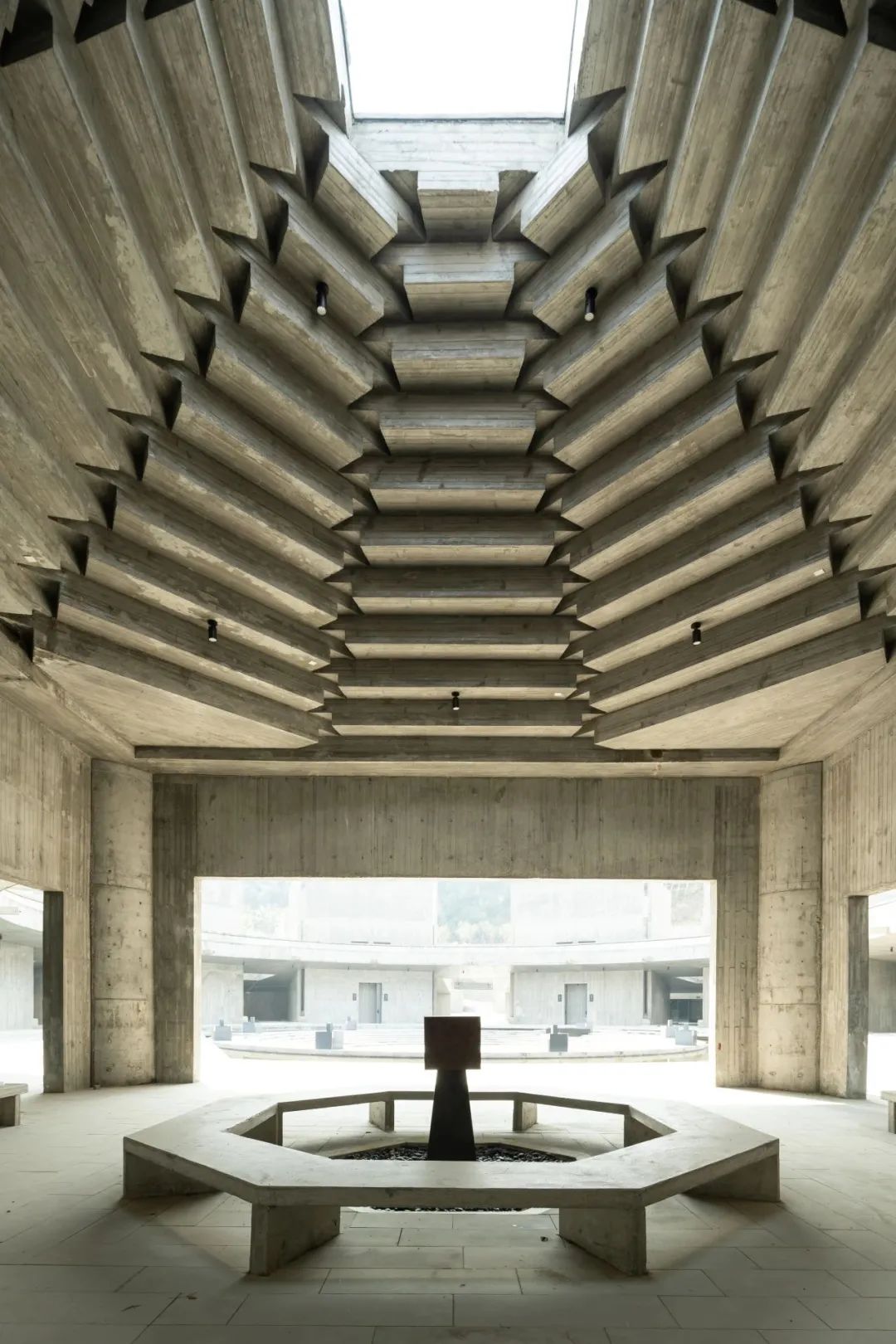 包括庭院、靈堂、休息廳、告別廳、火化車間等多個(gè)部分,結(jié)構(gòu)呈漣漪狀層層遞進(jìn),