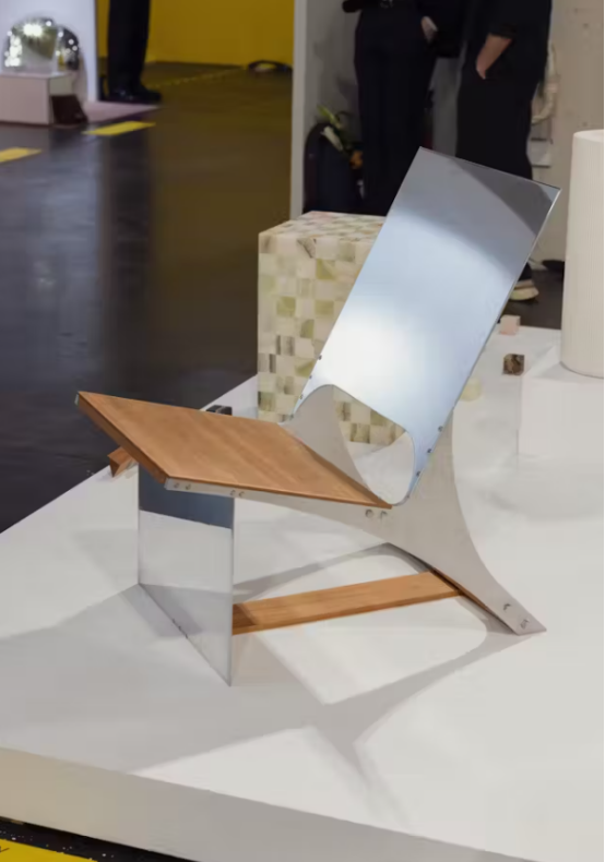 Sebastian Martinez設計的"Convergence"休閑椅堪稱極簡主義典范——櫻桃木座椅與拋光鋁框相得益彰。巧妙的是,椅底鏡面鋁板將木質框架無限反射,創造出視覺上的"無盡深淵"效果。