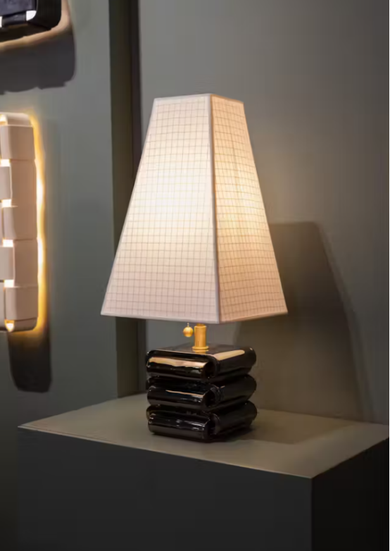 受遠古巨石啟發的Gio臺燈,羊皮紙燈罩營造柔和光暈,多種材質版本在簡約中暗藏視覺爆發力。