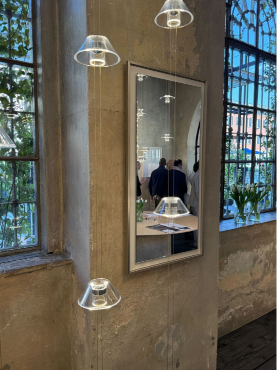 特定角度營造出溫暖光暈,引導光束形成預設的形態。當光線投射于墻面及周圍環境時,呈現出令人愉悅的視覺效果——今年米蘭展上恢弘的裝置陣容,更將這種光影藝術推向極致。