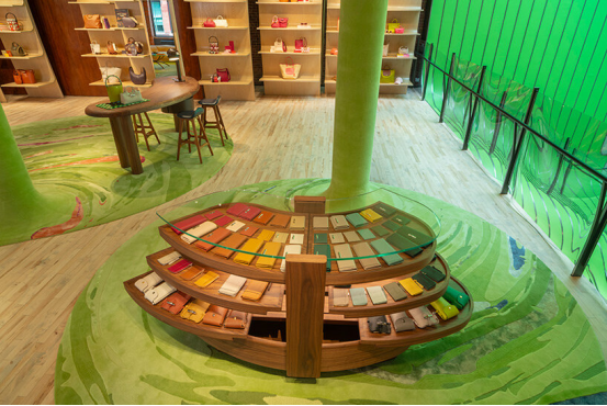 如今,這座標(biāo)志性樓梯以瓏驤品牌"能量綠"全新回歸,更強(qiáng)化了其模擬緩坡山形的意象。"我們不是零售設(shè)計(jì)師,"赫斯維克說,"我們的熱情在于打造能連接情感的空間。"他的設(shè)計(jì)始終平衡著展示與體驗(yàn)的雙重維度。