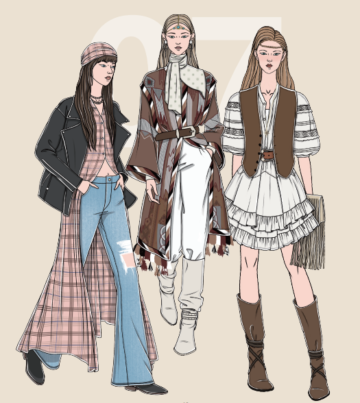 波希米亞風格融合了多元民族元素,呈現出自由奔放、隨性不羈且具有浪漫風情的穿搭風格,代表著一種反傳統的生活方式。