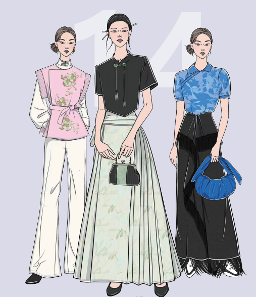 摩登新中式的經典單品包括改良旗袍、改良漢服、中式提花襯衫、馬面裙等。配飾將傳統元素與現代設計相結合,如竹子、祥云、水墨圖案、花卉等,變形改造后更加貼合年輕一代的喜好。