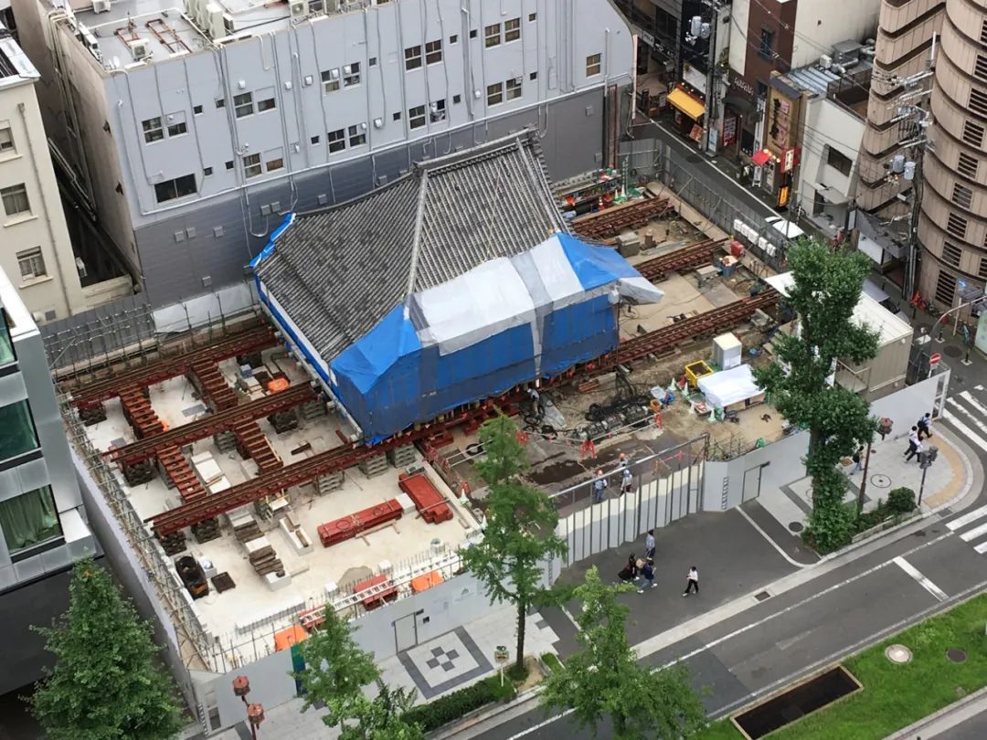 在施工方面,寺廟本堂的平移過程分三階段完成,采用結構樁基與臨時支撐系統保持穩定。建筑主結構與本堂之間設置120至200毫米的緩沖間隙,以滿足地震響應時的位移需求。該方式在保留原建筑完整性的同時,實現了新舊結構的空間兼容與施工可行性。