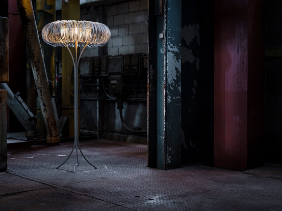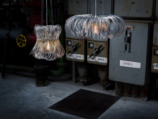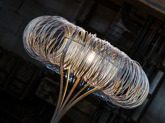 荷蘭RF Objects工作室的CLOCHE與ROUNDABOUT系列燈具,由設計師Ralph Frickel手工打造。CLOCHE系列靈感源自巴黎鐘形帽與1920年代燈罩,ROUNDABOUT系列則模擬交通環島意象。特選建筑用鋼纜材質,白天泛著柔和微光,夜間投射出動態陰影,將工業風與優雅功能完美結合。