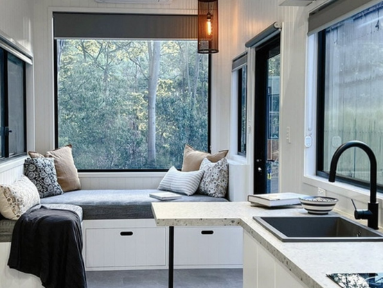 塔斯馬尼亞打造的Outlander微型住宅,全黑外觀顛覆傳統田園風。內部混凝土地板、黑色五金與白色墻板形成強烈對比,隱藏式儲物與閣樓臥室展現工業風的功能美學。