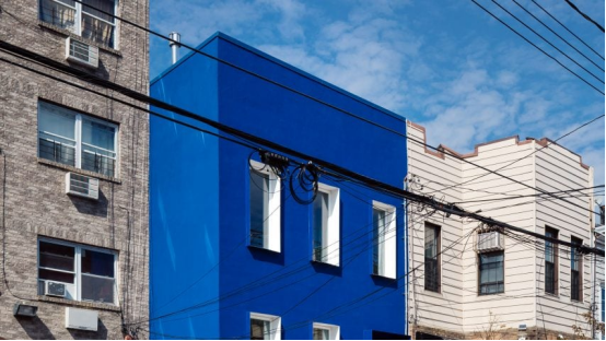 布魯克林這棟百年老宅經全藍改造,波紋鍍鋅鋼板圍合的花園會隨光線折射彩虹色。"單色調策略讓建筑成為獨立藝術品",創始人Leonidas Trampoukis解釋道。
