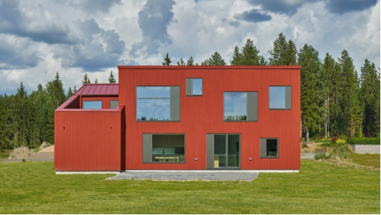當地松木全面涂紅的方案,將"紅色屋頂"的規劃要求升華為震撼視覺體驗。