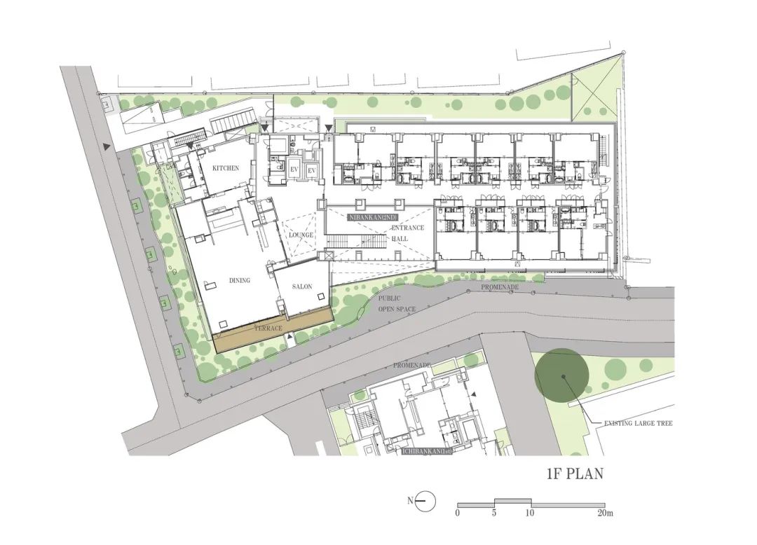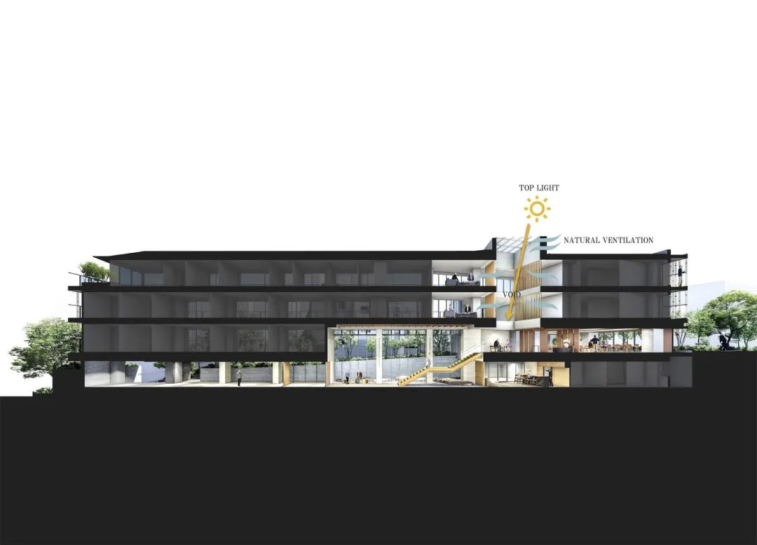 Nibankan?與當地社會和社會融合,根據與社區距離的連續性對空間進行戰略性定位,使住戶能夠控制自己與社區的接觸程度,老人不只在建筑中生活,也在人群中活動,交流。