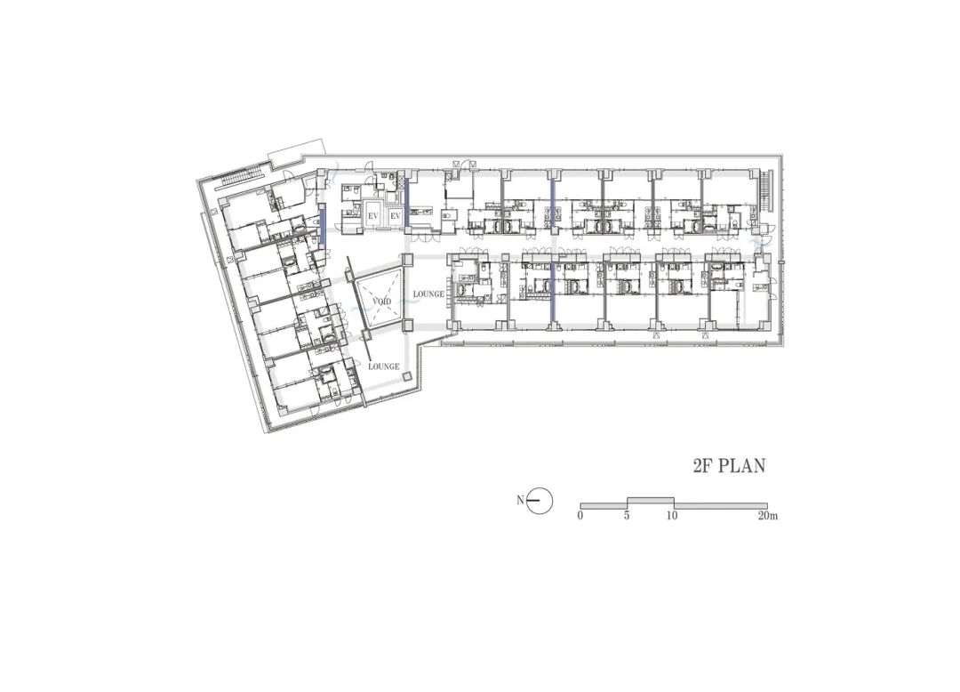 設計中的餐廳、沙龍和休息室都面向街道。這促進了與鄰居的休閑互動,同時有了曬太陽的積極空間。日班館二期標志著在東京充滿活力的城市景觀中心,向有尊嚴、相互聯系的老年生活邁出了大膽的一步。