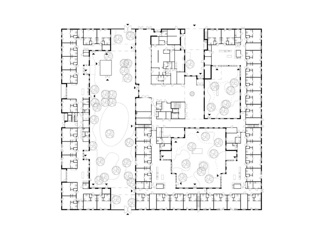 通過休閑花園、日常功能開放區(如理發店、餐廳、文化館、雜貨店)和癡呆癥友好型設計,未來的居民將生活在一個熟悉而溫馨的村莊環境中,而護理人員也將有一個有吸引力的工作場所。隨著越來越多的老年人受到老年癡呆癥的影響,有必要對醫療保健服務和設施進行創新和重新思考。