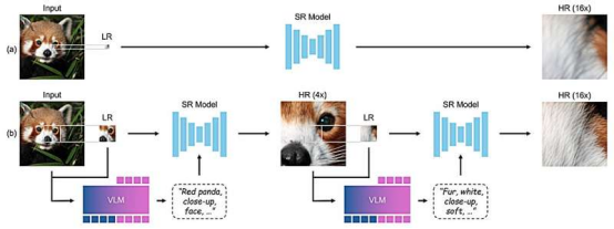 在每一級處理中,該框架都會調(diào)用現(xiàn)有的超分辨率(SR)模型啟動優(yōu)化流程。與此同時,視覺語言模型(VLM)會生成描述性提示詞,輔助SR模型完成圖像生成過程。最終輸出的就是原始圖像某個局部區(qū)域的放大版本。