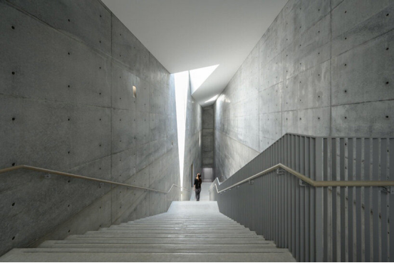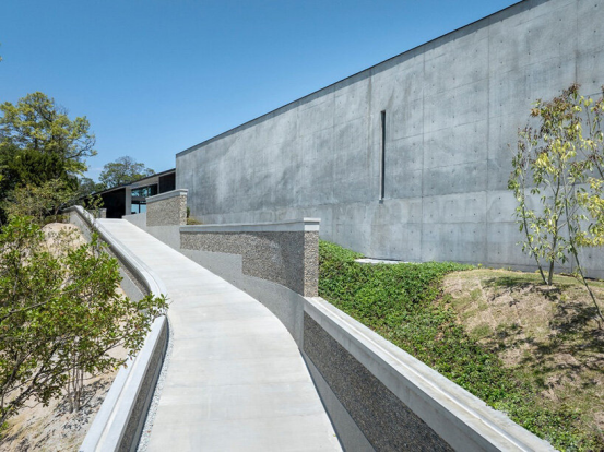 美術館包含地上1層與地下2層空間,以安藤標志性的混凝土、自然光與靜寂語匯,實現建筑與自然的交融。四間展廳環繞著垂直光井布局,開放式階梯在引導觀眾深入地下空間的同時,仍維系著與天空海洋的視覺聯結。室外咖啡露臺可眺望瀨戶內海與豐島景致,黑色灰泥與卵石飾面的外墻則呼應本村地區傳統民居的燒杉板肌理。
