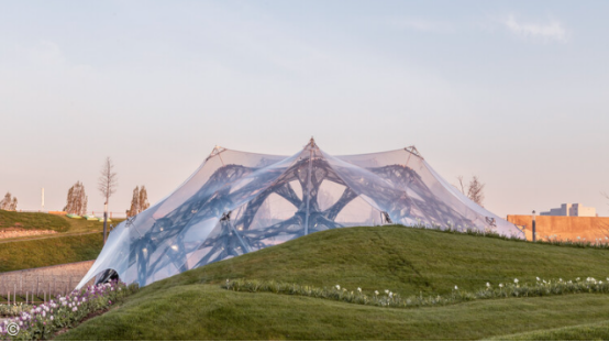 軟建筑本質(zhì)上是關(guān)于材料的革命。新型復(fù)合材料、膜結(jié)構(gòu)與響應(yīng)系統(tǒng)的出現(xiàn),使建筑變得更輕、更高效且更具表現(xiàn)力。ETFE等材料——一種具有高抗拉強(qiáng)度與出色透明度的氟聚合物——為創(chuàng)造既結(jié)構(gòu)穩(wěn)固又視覺(jué)輕盈的充氣圍護(hù)結(jié)構(gòu)開(kāi)辟了新可能。在格里姆肖設(shè)計(jì)的伊甸園工程或北京國(guó)家游泳中心中,ETFE氣枕以最小材料用量實(shí)現(xiàn)了光線與熱量的調(diào)節(jié)。