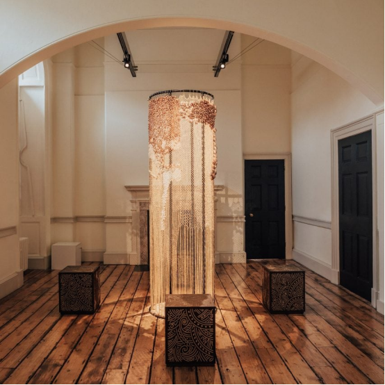 這位擁有斐濟、尼日利亞血統的設計師耗時700小時,用千米金鏈與數百枚曾在14世紀作為貨幣的貝殼編織出震撼裝置。"這是對西方的小小提醒——他們珍視的許多瑰寶其實源自全球南方,"阿拉基亞說。展后作品將赴尼日利亞、印度等地巡展。