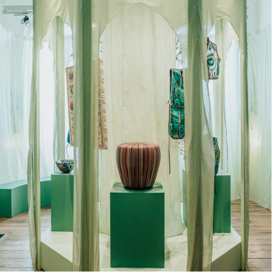 四家工作室向14世紀帖木兒帝國花園致敬,呈現可反轉圖案的現代恰潘長袍,以及受王朝細密畫啟發的迷幻玻璃器皿。"我們試圖在傳統工藝中注入當代靈魂,"設計師尼戈拉·哈希莫娃說道。
