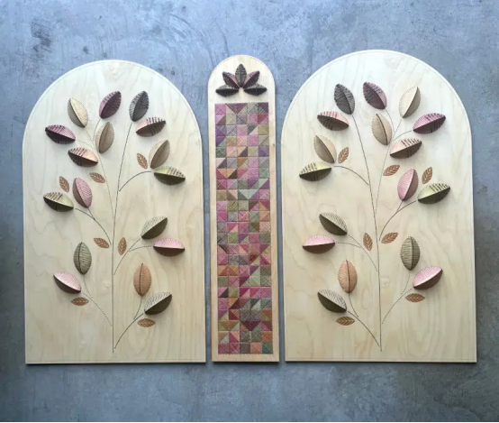 在達拉斯藝術家Nosheen Iqbal的手中,刺繡不再局限于布料載體。這位扎根巴基斯坦文化傳統的創作者,將 Punjabi 手工藝與伊斯蘭建筑美學相融合,開創出以木材為基底的立體刺繡藝術。她的作品被定義為"對自我存續與身份認同的探索",那些祖輩傳承的明艷色彩與繁復紋樣,通過觸感與光學的重新演繹,化為木質畫布上盛開的植物卷須與幾何圖騰。