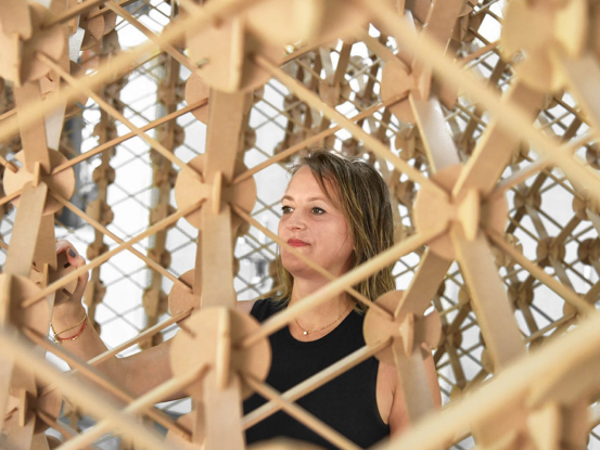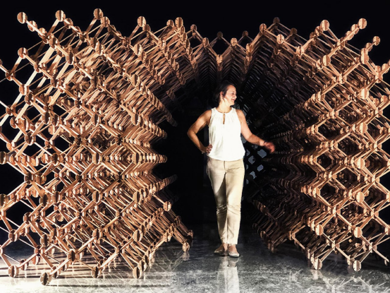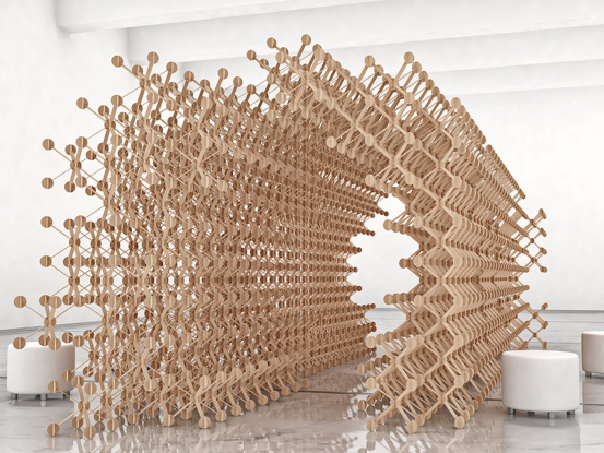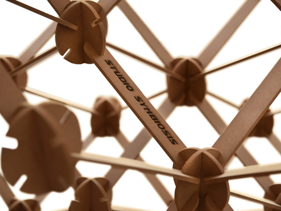 Studio Symbiosis設計的Plexus系統通過模塊化節點和連接件,支持上千種展位組合。受捕蠅草啟發,該結構可快速拆裝和平鋪運輸,既減少廢棄物又保持創意靈活性。