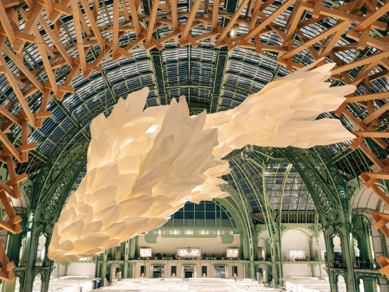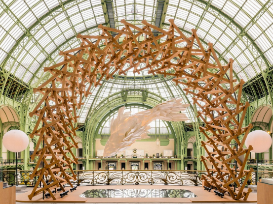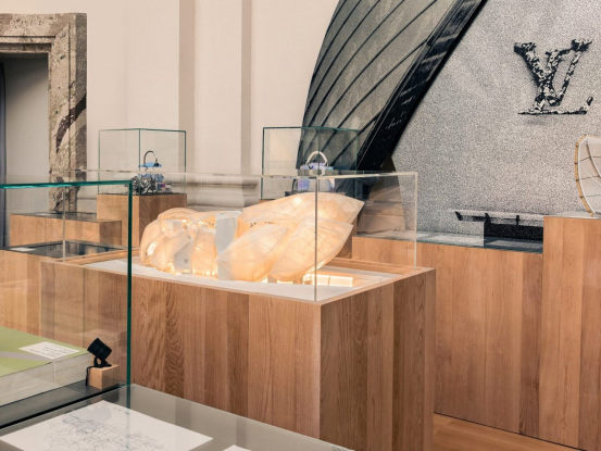路易威登在巴黎藝術博覽會上用弗蘭克·蓋里的魚形燈和幾何拱門,呈現了建筑與奢侈品的20年跨界對話,其展品包括受古根海姆博物館啟發的限量手袋。