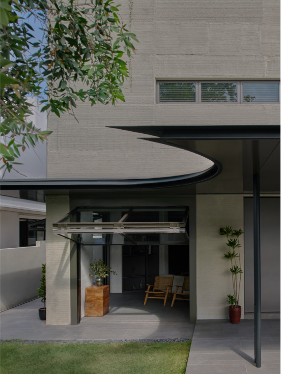 這個歷時兩年的項目與本地3D混凝土打印專家CES_InnovFab合作完成,正值新加坡建筑業面臨疫情后勞動力短缺與成本飆升的關鍵時期。林君博對替代建造方式的長期興趣——尤其是可能應用于主流建筑的技術——使他以常規住宅設計流程開啟項目,后期再為打印工藝調整方案。