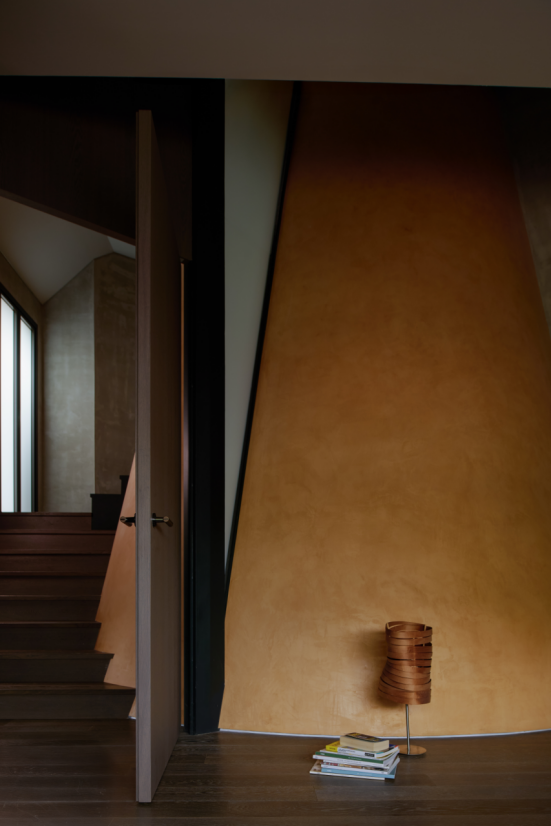 西墻與鄰宅共用以避開烈日,深挑檐遮蔽東南向空間,臥室小窗減少熱負荷。熱泵熱水器運行時產生的冷空氣還被循環利用至頂層房間。