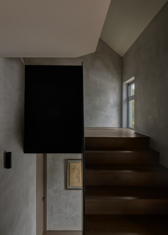 空間以采光井為核心展開交響:層高從露臺區3米到家庭廳5米起伏變化,混凝土殼體中的意外框景不斷引導視線。材料選擇低調詮釋可持續理念:結構混凝土與打印部件協同工作,地板混合大規格瓷磚、再生復合材料與工程木料,甚至將本地石材商的廢棄大理石塊變作衛浴間地坪。