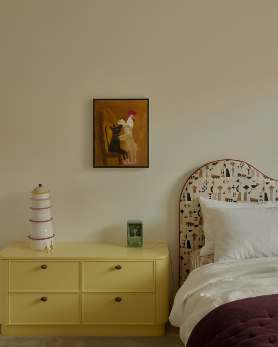 Studio Prineas對這個90年代平庸的海港公寓進行"尺度重構(gòu)",通過調(diào)整門洞、儲物系統(tǒng)和房間格局優(yōu)化光線品質(zhì)。秉持"多思考,少建造"理念,原有Calacatta大理石臺面被保留,其金色脈絡啟發(fā)了明黃色調(diào)的新配色?;⌒伍T框、廚房中島與橙色勾縫等細節(jié)處處見巧思,灰色微水泥帶來清涼感,原有五金件經(jīng)鈷藍色鍍膜處理后形成驚喜對比。