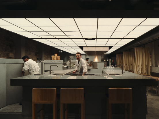 這家布里斯班地下餐廳由J.A.R Office設計,在致敬80年代香港浮華時代的同時,突顯粵菜烹飪藝術(shù)。手鑿花崗巖基座構(gòu)成階梯座位,照明天花為極簡空間注入活力。借鑒粵劇舞臺設計,每張餐桌都正對開放式廚房,讓食客在品嘗美味時同步欣賞烹飪表演。