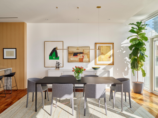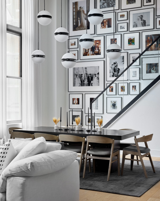 適用墻面:水平排列適合大面積墻面,可呼應(yīng)空間中的其他橫向元素如長餐桌