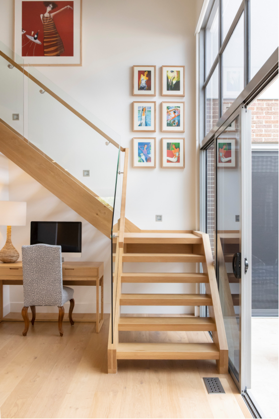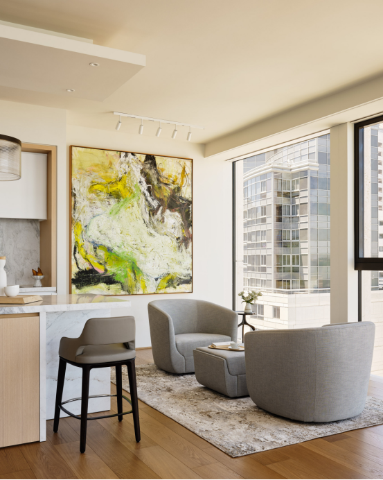 懸掛技巧:除居中懸掛外,可巧妙對齊建筑結(jié)構(gòu)線(如圖中畫作頂部與轉(zhuǎn)角墻面對齊)