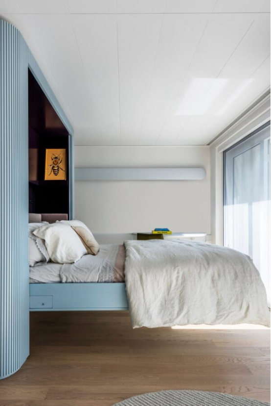 隱形床(壁床)是小戶型的革命性設計。不用時折疊入墻或柜體,臥室秒變客廳、書房或健身區。這種設計讓你獲得多功能空間卻不犧牲睡眠質量。現代隱形床常搭配內置書架或書桌,進一步強化功能性。如果你想白天收回地面空間,晚上又能舒適就寢,這絕對是最佳方案。