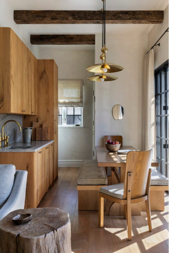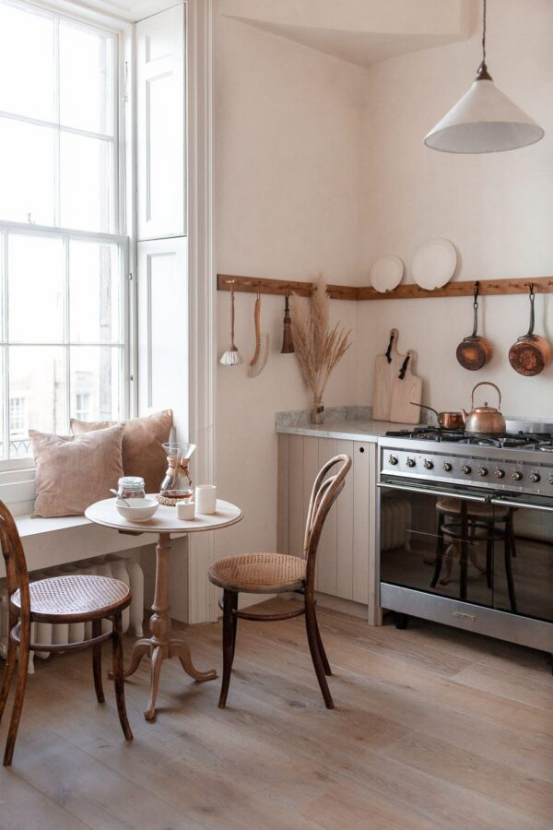 大餐桌會霸占小餐廳的全部空間,讓人轉不開身。如果你很少招待多人聚餐,不妨換成小圓桌或折疊式餐桌。它們既節省實際空間又減輕視覺壓迫,日常用餐完全夠用。可以備些折疊椅應對偶爾的客人來訪。圓桌特別適合小空間,因為沒有棱角阻礙動線,還能營造親密的用餐氛圍。小餐桌讓整個區域更顯通透實用。