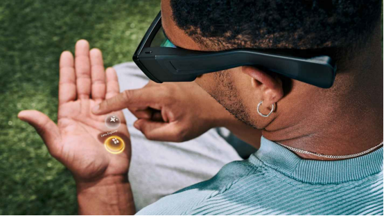需要注意的是,傳統(tǒng)XR眼鏡(如上圖)通過將微型顯示屏投射到鏡框背面實現(xiàn)擴(kuò)展現(xiàn)實,形成巨大的可穿戴屏幕。這種貼近眼睛的設(shè)計能營造出數(shù)英尺遠(yuǎn)的數(shù)字畫布效果。雖然適合在飛機(jī)上觀影或辦公,但并不適合日常行走時使用。