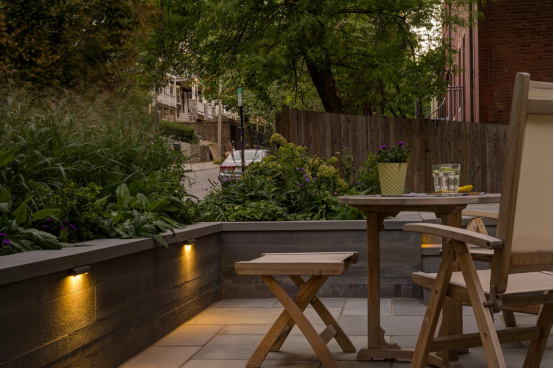 選擇向下投射的暖光燈具,集中照亮露臺而非整個庭院。記得入睡前關閉光源,讓夜行動物也能享受黑暗。