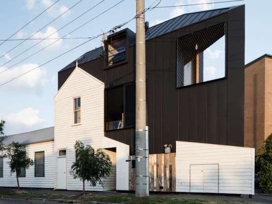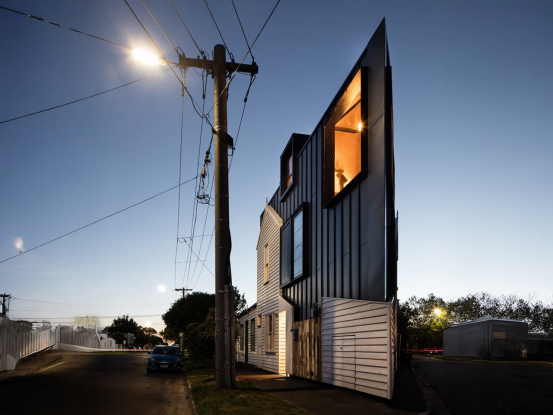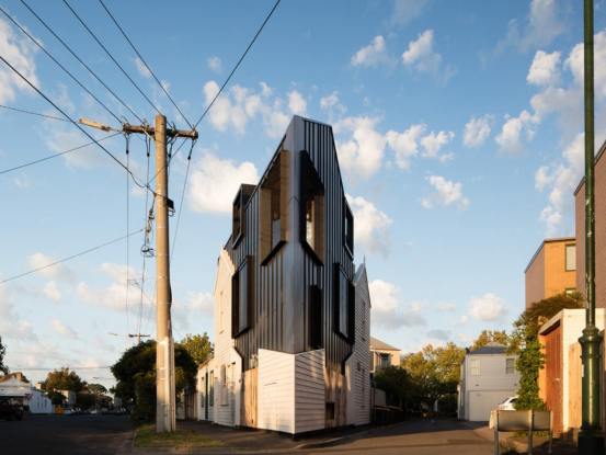 Acute三角住宅展現(xiàn)了極端地塊的改造智慧:這座位于墨爾本的2米窄鋒現(xiàn)代住宅,保留19世紀(jì)小屋立面,內(nèi)部通過定制家具、隱藏儲物與天窗設(shè)計(jì)實(shí)現(xiàn)空間高效利用,回收木材與波紋鐵皮則賦予建筑歷史質(zhì)感。