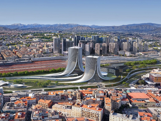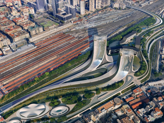 徹底拆除無法修復(fù)的建筑,優(yōu)化土地功能。典型案例扎哈·哈迪德事務(wù)所的那不勒斯東門計(jì)劃:兩座玻璃金屬塔樓以維蘇威火山為景,7千平米太陽能板與地?zé)嵯到y(tǒng)使廢棄煙草廠蛻變?yōu)樯鷳B(tài)新區(qū)。