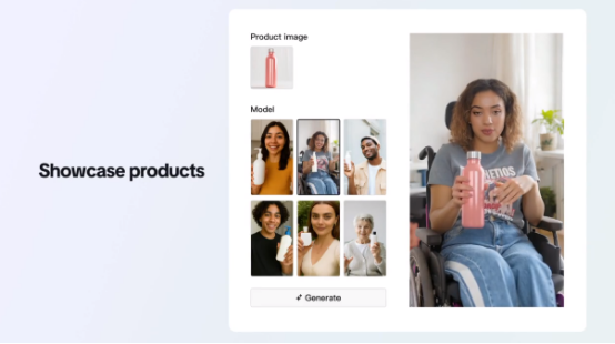 第三款"產品展示"工具能將商品圖片與數字人像融合。廣告主可讓虛擬形象手持產品、試穿服裝或在智能手機上演示應用,打造更具動感的用戶生成內容(UGC)風格廣告。