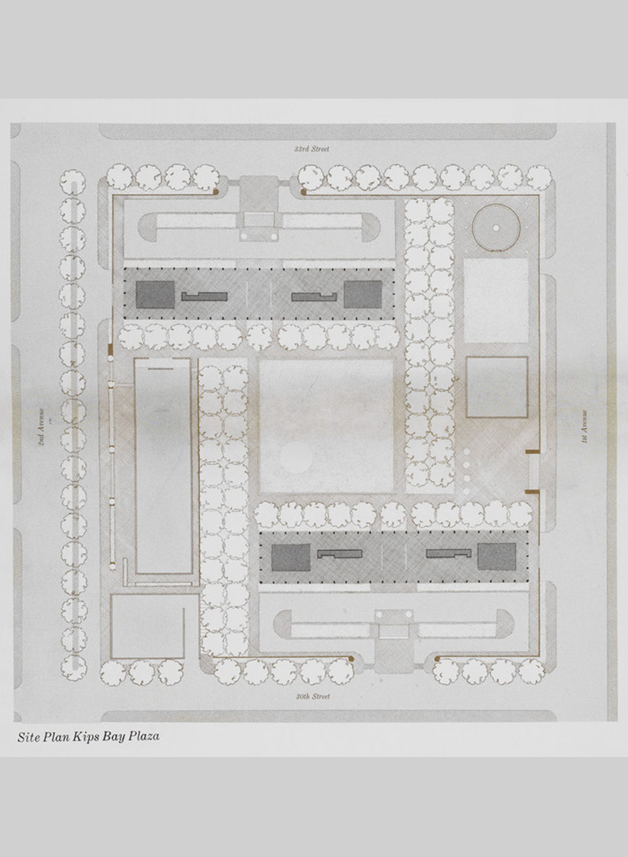 建筑退后 讓出花園「Kips Bay Towers」位于美國紐約曼哈頓東側(cè),占地約 4 萬平方米,介于 30 街至 33 街、第一大道至第二大道之間。項目包括兩棟分別建在地塊南北兩側(cè)21 層的長條形住宅塔樓,共有 1,160 套公寓,每棟樓 560 套,每層 28 套。