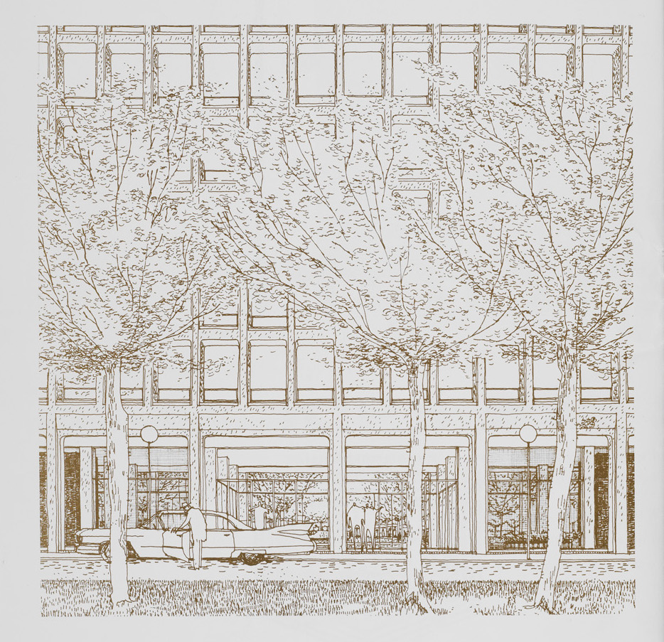 這座建筑在街道一側(cè)呈現(xiàn)為由鋼筋混凝土框架構(gòu)成的簡潔立面,背后則隱藏著更復(fù)雜的空間組織。貝聿銘將建筑簡化為“純板”形式,將一至兩居室的公寓圍繞中央走廊布置,并通過外露結(jié)構(gòu)框架的方式,有效減少內(nèi)部柱子數(shù)量,提升了戶型的使用效率與靈活度。