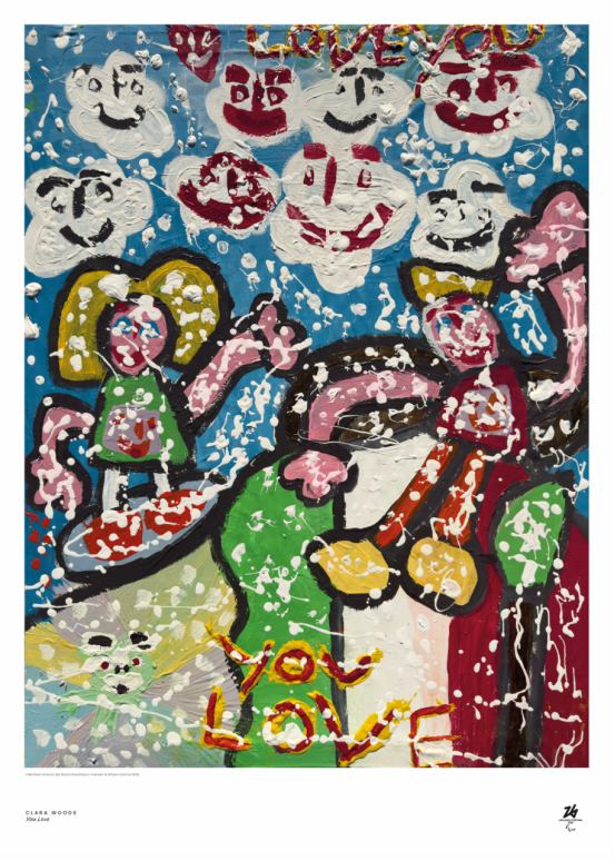 在藝術(shù)家描述的"治愈之雪"場(chǎng)景里,兩個(gè)角色置身冬日樂(lè)園。笑臉云朵、霜雪中綻放的花朵,以及"愛(ài)你所愛(ài)"的宣言,共同構(gòu)筑出溫暖人心的畫(huà)面。