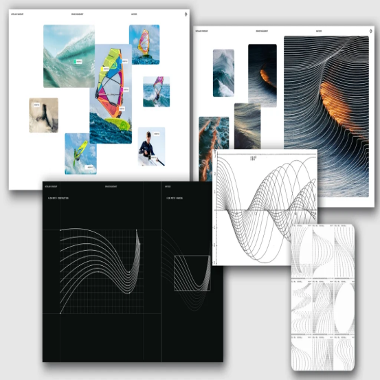 Darbishire表示,設計過程需要平衡看似矛盾的元素。“我們想要真正融合自然與技術,”他說道。為此,團隊創造了波浪般的漸變色,引導視線穿過構圖,同時融入藍圖元素以傳達技術精密感。這些設計既與Windsurf品牌的扁平風格形成鮮明對比,又進一步延伸了其人性化特質。