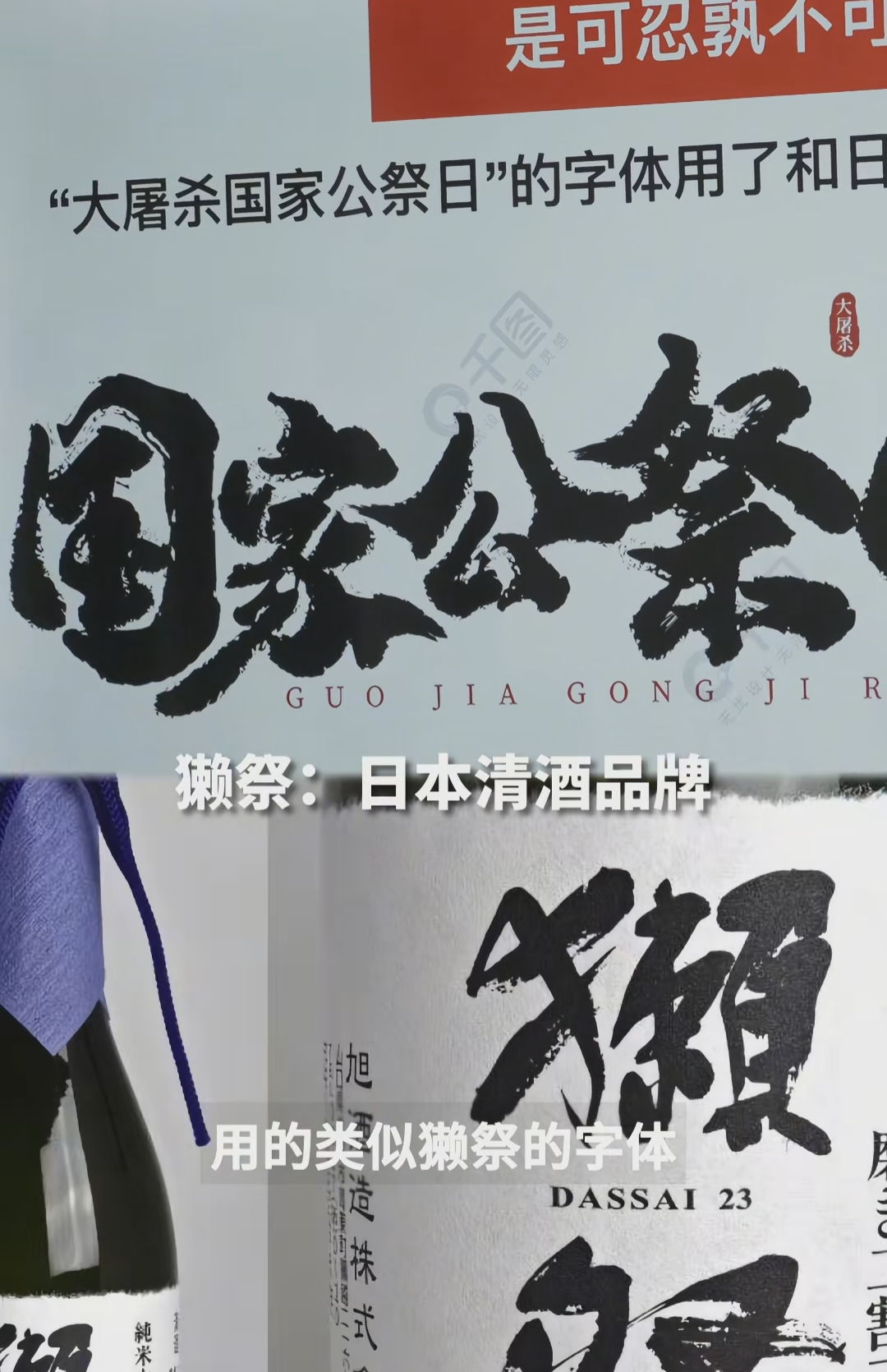 就是圖片中“大屠殺國(guó)家公祭日”,使用了類似日本獺祭的字體。