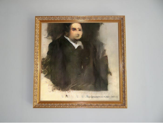 GANs生成的肖像《埃德蒙·德·貝拉米》以43.25萬美元成交。圖片來源:Obvious Collective(教育用途)